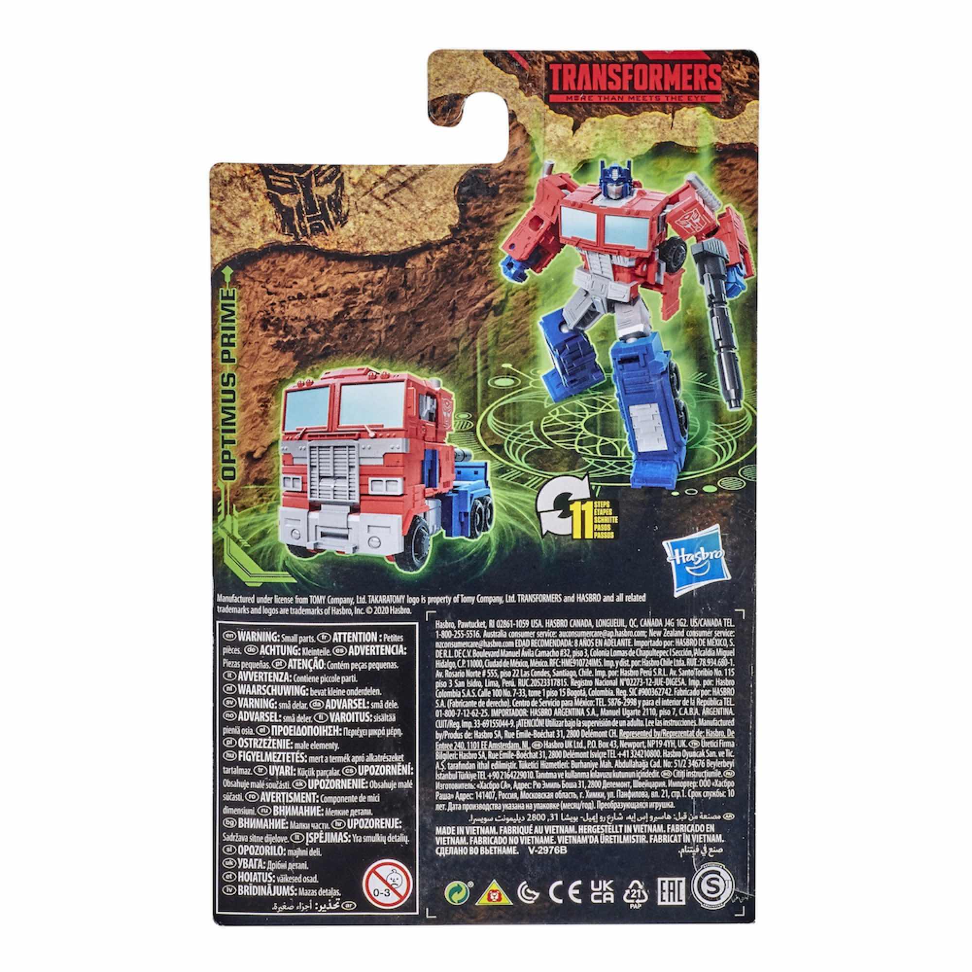 Hasbro presenta dentro de la colección War For Cybertron Kingdom Core Class Series esta figura de Optimus Prime de la serie Transformers versión G1. Esta figura se convierte de camión a robot en 11 pasos. Mide unos 10 cm de alto y está hecho en PVC. Se incluye 1x arma.