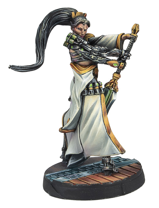 Esta caja incluye una miniatura metálica exclusiva de Beasthunter con arma CC explosiva. Una mujer especialista en cazar megabestias monstruosas, así que imagina lo que les hará a los soldados enemigos.